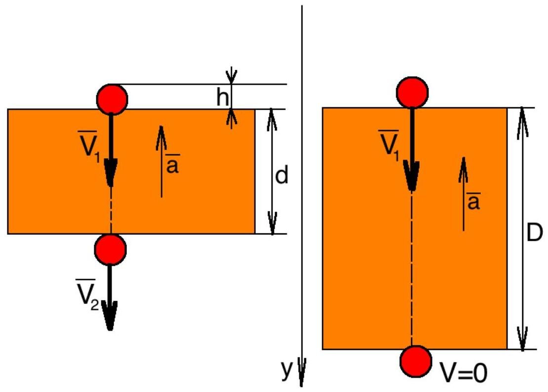 Assuming constant acceleration we can use the rate equation and motion equation to find the acceleration inside the board. Rate equation along the Y axis: