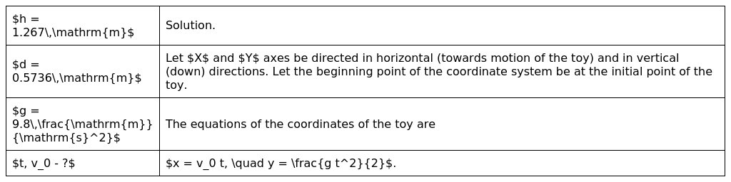 1. A toy car runs of the edge of a table that is 1.267m high. The car lands 0.5736m from the base of the table. How long does it take for the car to fall? The acceleration due to gravity is 9.8m/s. What is the horizontal velocity of the car?