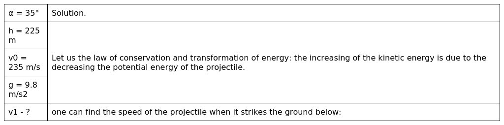 1. A projectile is fired at an upward angle of 35.0 degrees from the top of a 225-m cliff with a speed of 235m/s . What will be its speed when it strikes the ground below? (Use conservation of energy.)