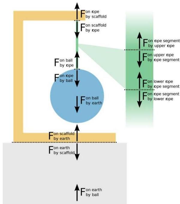 As tension is the magnitude of a force, it is measured in newtons (or sometimes pounds-force) and is always measured parallel to the string on which it applies. There are two basic possibilities for systems of objects held by strings: Either acceleration is zero and the system is therefore in equilibrium, or there is acceleration and therefore a net force is present. Note that a string is assumed to have negligible mass.