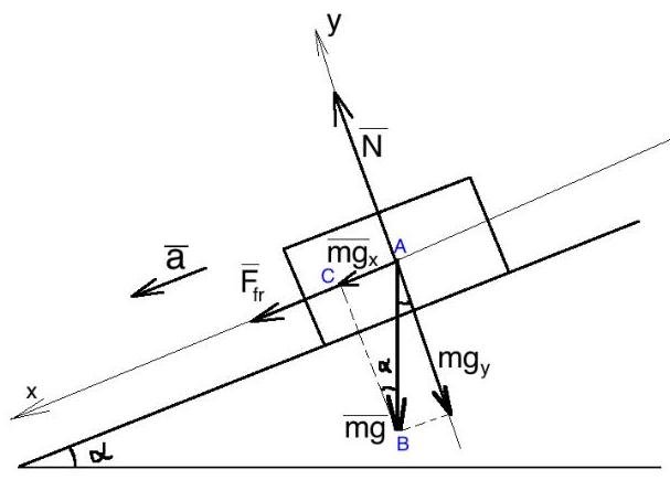 sinα=mgmgx⇒mgx=mgsinαcosα=mgmgy⇒mgy=mgcosαN=mgy=mgcosα