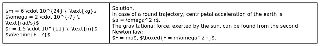 1. The earth (mass = 6⋅1024kg) revolves around the sun with an angular velocity of 2⋅10−7rad/s in circular orbit of radius 1.5⋅108km. The force exerted by the sun on earth in newtons is...