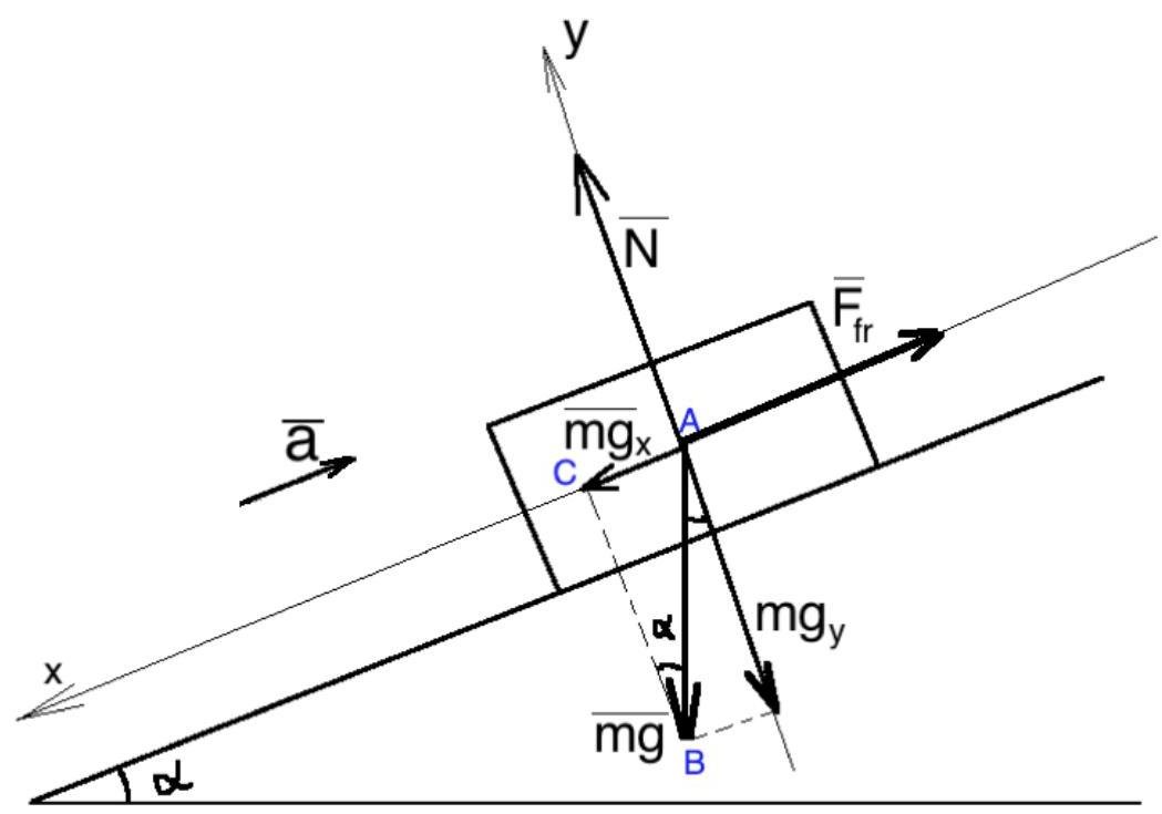 sinα=mgmgx⇒mgx=mgsinαcosα=mgmgy⇒mgy=mgcosαN=mgy=mgcosα