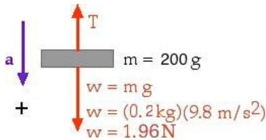 m=200g=0.2kg - that mass that hangs over a pulley;