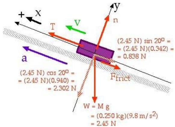 n=Mgcos20∘=0.25kg⋅9.8kgN⋅cos20∘=2.3N