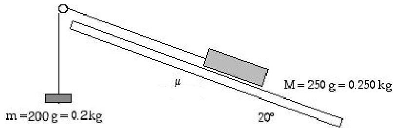 μ=nmg−M(gsin20∘−a)=2.3N0.2kg⋅9.8kgN−0.25kg⋅(9.8kgN⋅sin20∘−1kgN) =0.6