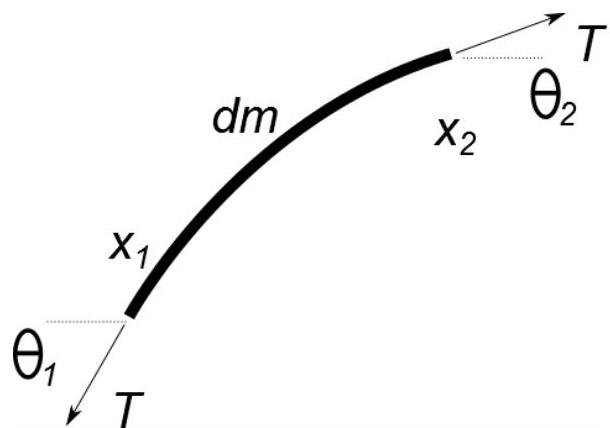 μdx∂t2∂2y=T(∂x∂y∣∣x=x2−∂x∂y∣∣x=x1),