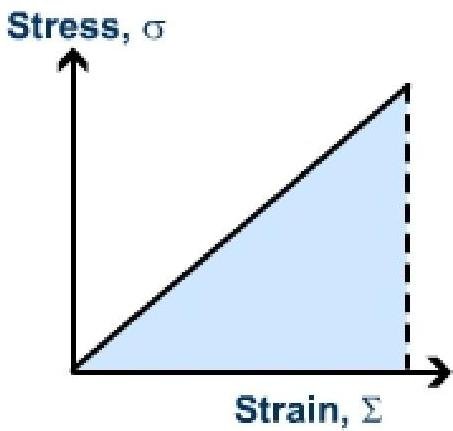 We know that when a material behaves elastically, the work done on straining it is stored as energy in it. We call this (elastic) strain energy. We can derive the strain energy density (ρe)(\rho_{\mathrm{e}}) in a material by calculating the area under its stress - strain graph. The definition of the density of energy is analogous to the definition of the density of mass. It is the energy stored per unit volume (how many joules are stored in 1m31\mathrm{m}^3 of the material).