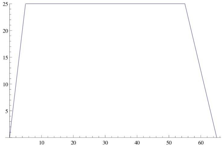 III. Motion with retardation for 10 seconds. Using formula ν=ν0+at find the retardation, 0=25+10⋅a⇒a=−2.5s2m . Hence, velocity as a function of time is ν=25−2.5t (If time starts from zero at third part of the track).