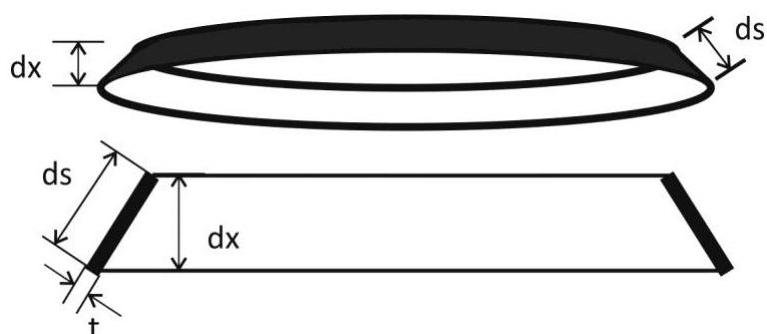 Mass of ring dm=ρ⋅dV=ρ(2π⋅y⋅ds)t