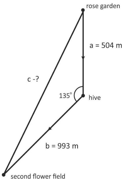 a = 504 m (distance from a rose garden to the hive),