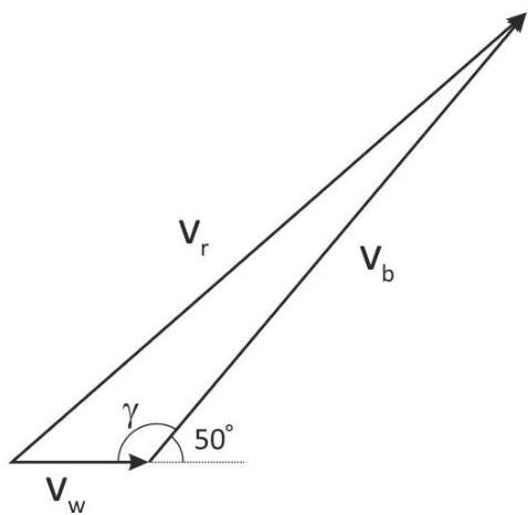 γ=180∘−50∘=130∘ (angle between the direction from the west and north-east direction).