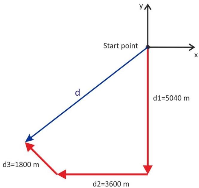 (a) total vector displacement M magnitude. deg south of west
