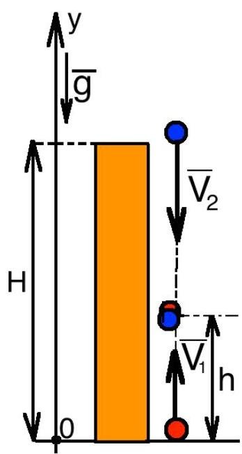 V1tc r o s s−2gtc r o s s2=H−2gtc r o s s2H=tc r o s sV1tc r o s s=V1H=40sm40m=1sh=y2(tc r o s s)=y1(tc r o s s)=H−2g(tc r o s s)2=40m−29.8s2m⋅1s2=35.1m