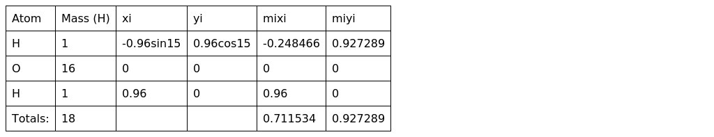 xcm=Mtotal∑mixi=180.711534=0.0395297=0.0395A˚