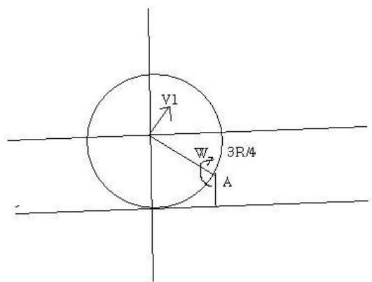 A disc of mass M and R radius is rolling purely wide center of velocity v on a flat surface, then it hits a step in the floor of height R/4. The corner of step is sufficiently rough to prevent any slipping of disc against itself. What is the velocity of center of disc just after the impact?