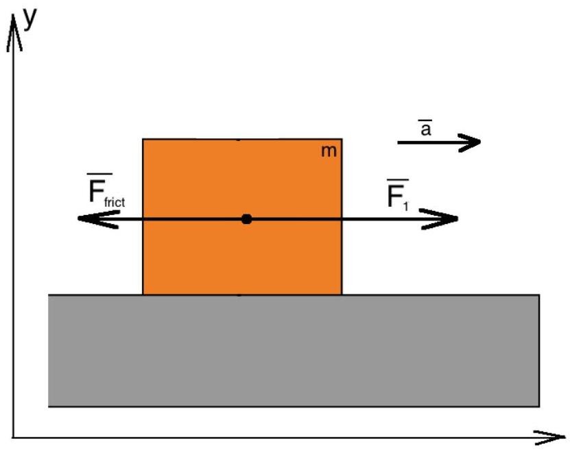 F1=40N−horizontal force;Ffrict=8N−frictional force;m=5kg−mass of the block;