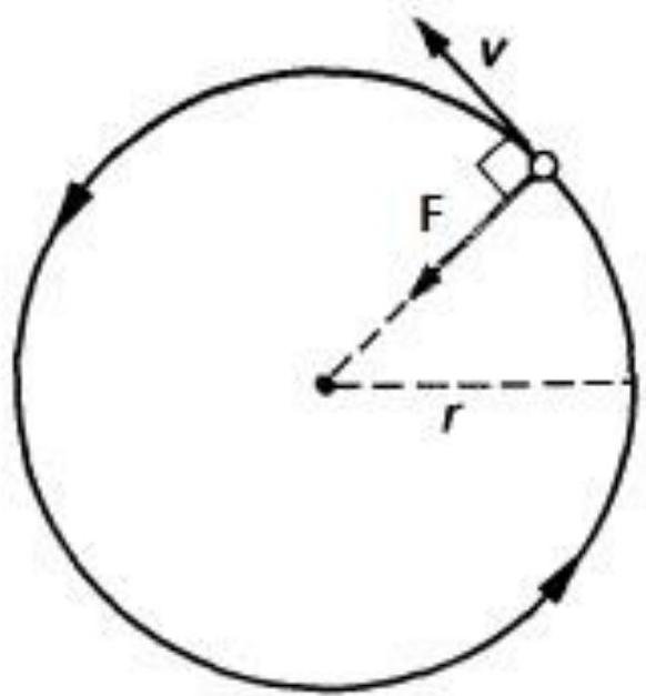 A body of mass is moving in a horizontal circle of radius with constant speed . The force on the body is and is directed towards centre.