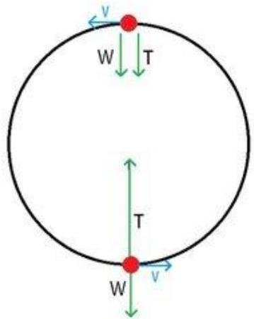 The Tension and Weight are the forces causing the acceleration. The ball is also moving in a circle so at the highest and lowest points