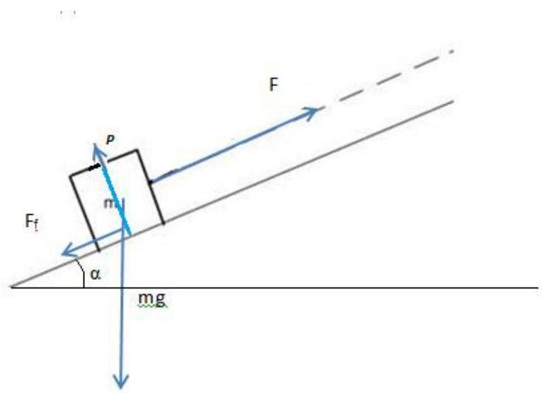 Where Fr is frictional force, P is reaction force of floor, mg¨ is gravitational force, F is force applied at an angle of 37 degrees above the horizontal pulls