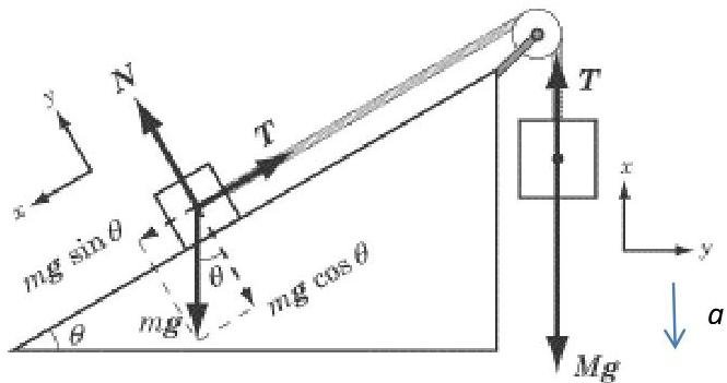 for mass M : Mg−T=Ma