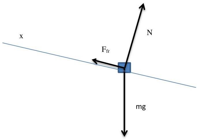 Friction force equals Ffr=μN=μmgcosθ , μ - coefficient of friction.