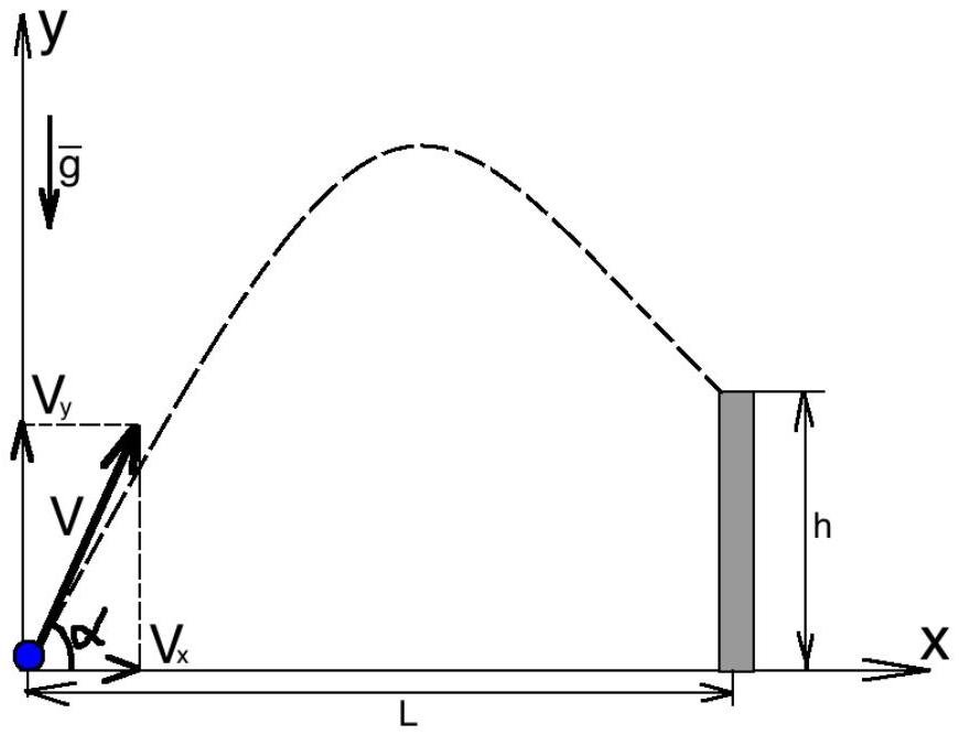 Equation of the motion for the ball, directed at angle α: (t – time of the flight)