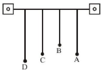 Four pendulums A, B, C and D are suspended from the same elastic support as shown in fig. A and C are of the same length, while B is smaller than A and D is larger than A. If A is given a transverse displacement,