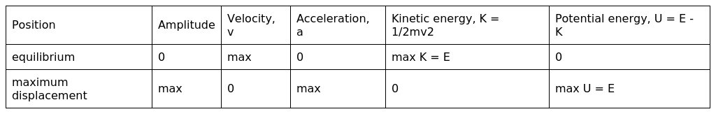 - the kinetic energy is zero at the maximum displacement from equilibrium position
