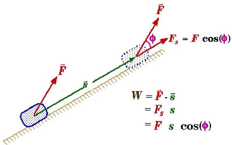 A force at an angle of above the horizontal displaces an object through a distance in its along the horizontal. Which of the following is the CORRECT expression for the work done on the object by the force?
