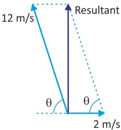 A bus is moving along a road at the rate of . In what direction should a stone be projected from it with a velocity of so that the resultant motion of the stone may be right angle to the motion of the bus?