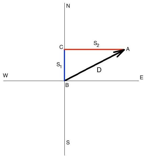 A car moves 30m north and then 40m east then what is the magnitude of displacement of the car?