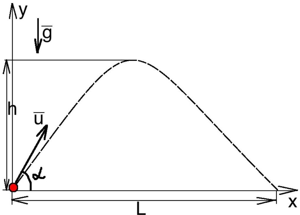 Equation of the motion for body, thrown at angle α : (L - maximum horizontal range of this body) (t - time of the flight)