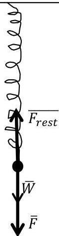 where is the force of our hand pulling spring down, is the weight of a spring, is the restoring force.