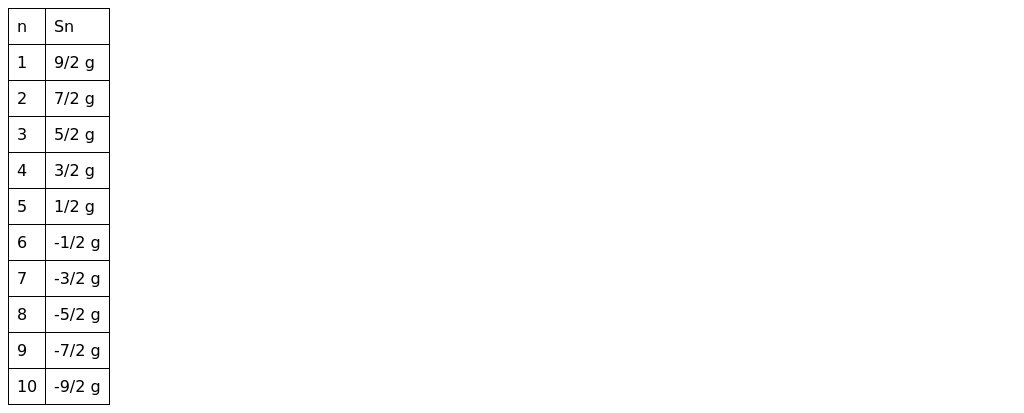 Sn=(V0−g(n−1)Δt)Δt−2gΔt2=V0Δt−ngΔt2+2gΔt2=5gΔt2−ngΔt2+2gΔt2