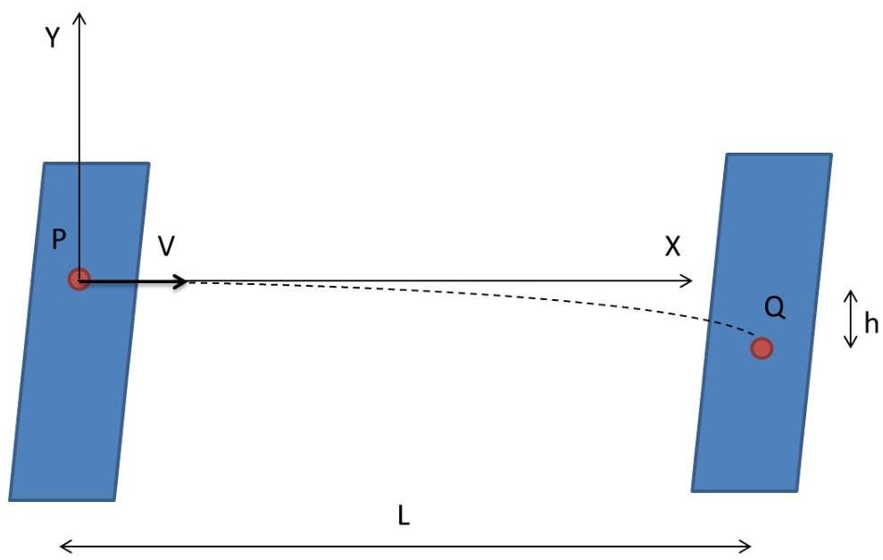 Two paper screens A and B are seperated by distance 100m. A bullet penetrates A and B at points P and Q respectively, where Q is 10 cm below P. If bullet is travelling horizontally at the time of hitting A, the velocity of bullet at A is
