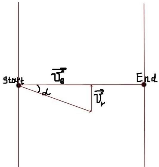 but the boat is moving at an angle relative to the perpendicular-line that connects two points on opposite banks, because the current will always reject at a small angle to the direction of flow. Let the angle is , so