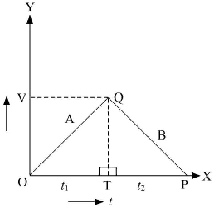 A car accelerates from rest at a constant rate 'A' for sometime, after which it retards at a constant rate 'B' to come to rest. If the total time lapse is T seconds, evaluate the maximum velocity reached and total distance travelled, in terms of 'A', 'B' & 'T'?