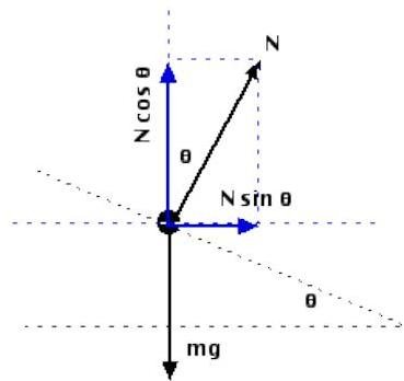 A car of mass 1000kg negotiates a banked curve of radius 90m on a fictionless road. If the banking angle is 45 degree, the speed of car is