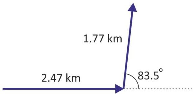 A car travels in the x-direction, then turns left to the original direction and travels an additional distance of .