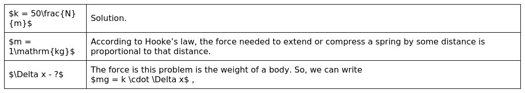 1. A spring has a spring constant of . It is placed vertically and a mass is placed on top of it. The compression produced in the spring by this mass is?