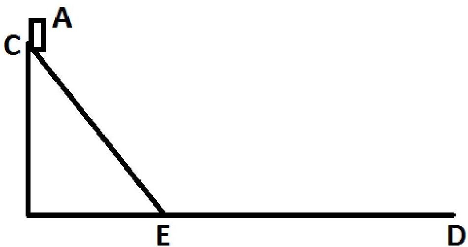 The 20 kg suitcase A is released from rest at point C of height 3 m from floor ED. The suitcase slides down a friction-less ramp between C and E and continues sliding on the floor until stopping at a certain distance from E.