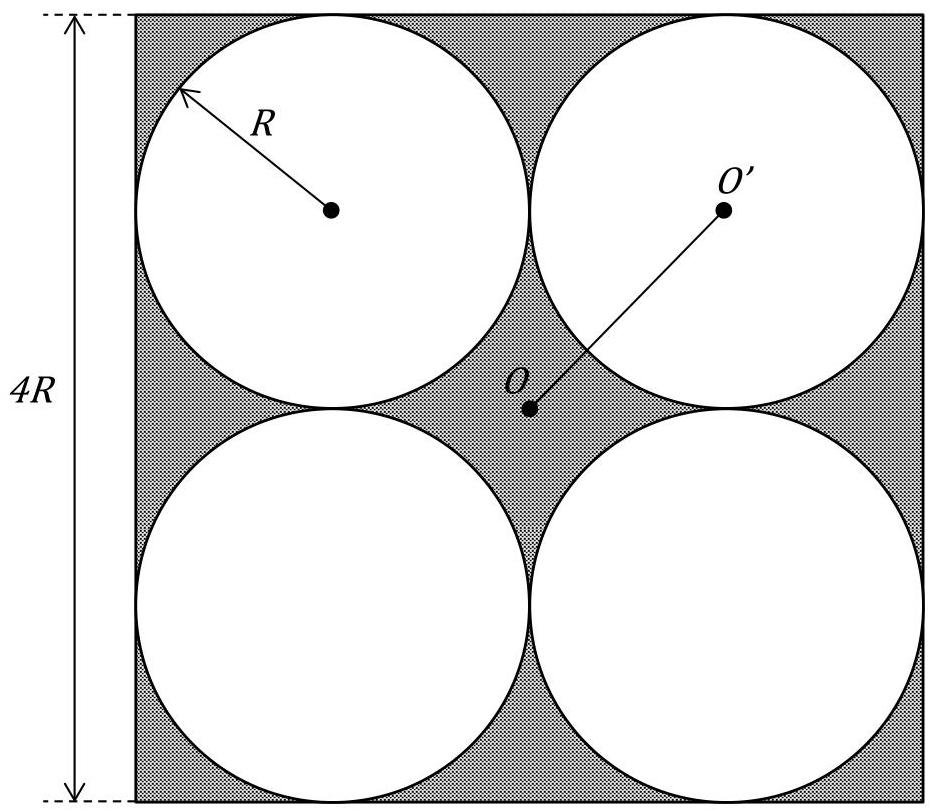 4 holes of radius are cut from thin square plate of side and mass . The moment of inertia of remaining part about axis is?
