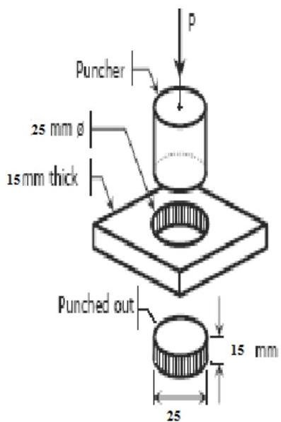 What force is required to punch a 25mm diameter hole through a 15mm thick plate? The ultimate shear stress of the material of the plate is 380 MPa. Express the answer in kN.