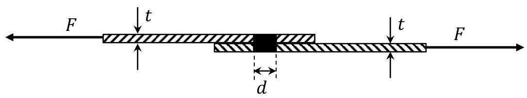 The lap joint is fastened together using two bolts. Determine the required diameter of the bolts if the allowable shear stress for the bolts is τ=60MPa and the allowable bearing stress in the plates is σ=110MPa . Assume each bolt supports an equal portion of the load and the thickness of each plate is t=20mm . Express the answer in millimeters.