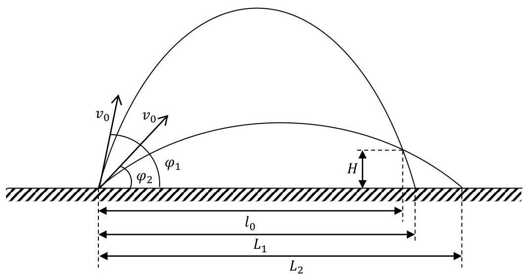 L2=v0cosφ2⋅t=11.6m