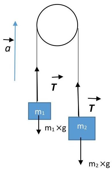 {T−m1×g=m1×aT−m2×g=−m2×a