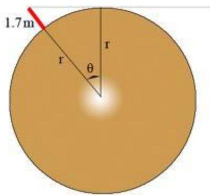 cosθ=r+1.7rr+1.7r=cos(0.04174)≈0.999129013r=1−cosθ1.7∗cosθ=1−0.9991290131.7∗0.999129013=1950m