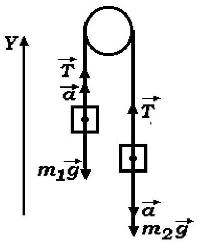 A 2kg and a 4kg hang freely at opposite ends of a light inextensible string which passes over a small and light pulley fixed to a rigid support. Calculate the acceleration of the system.