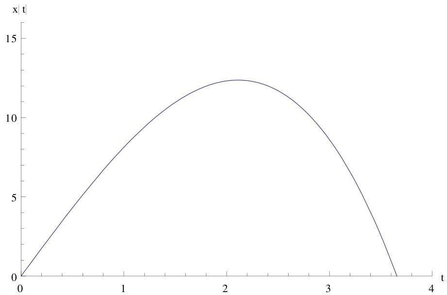 We built the dependence of x(t) using mathematical software (see Fig.1). From Fig.1 it is clear that x never gets 15cm.